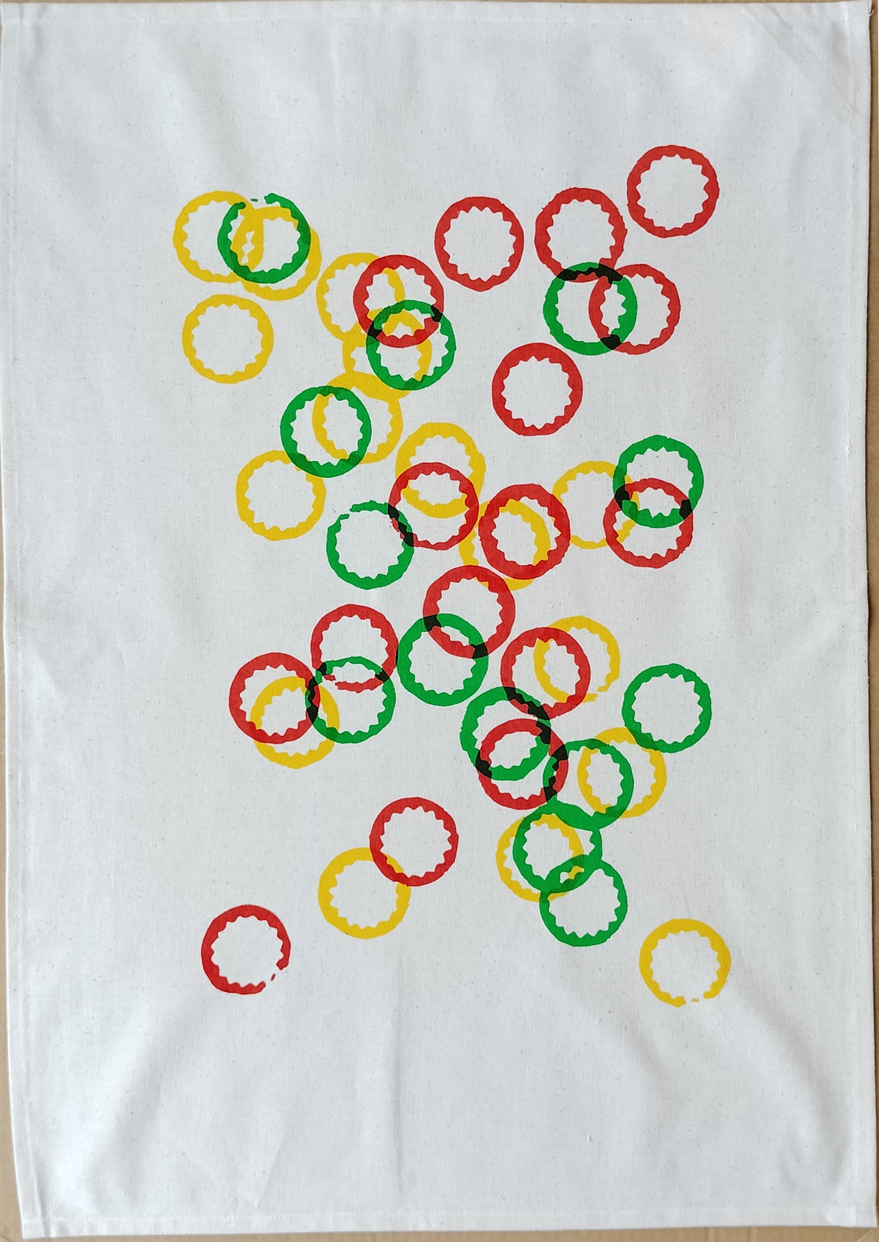 Circles Kitchen Towel: Screen printed by our own hands, these kitchen towels are printed onto 100% unbleached Indian cotton. They truly do soak up the water. How do we know? Well, because we use them ourselves!