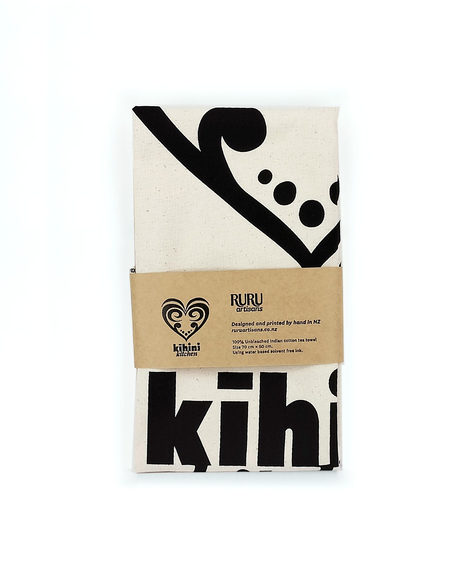 This beautiful kitchen towel isn’t just a practical tool, Kitchen Towel Kihini Black is a piece of art for your home. It is an example of kitchen essentials. The unique heart design, with its swirling lines and dots, adds a touch of warmth and personality to any kitchen. The word “kīhini,” which means “kitchen” in te reo Māori, the language of New Zealand’s indigenous people, adds a special cultural touch.