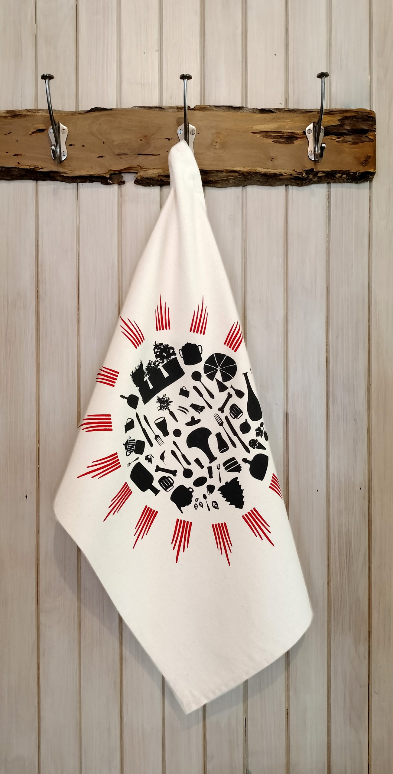 Kitchen Towel Kitchen Things isn’t your ordinary dishcloth. Look at it! It’s a celebration of all kitchen essentials, a snapshot of the heart of your home. Those playful silhouettes of pots, pans, and utensils remind us of the joy of cooking and the warmth of shared meals.